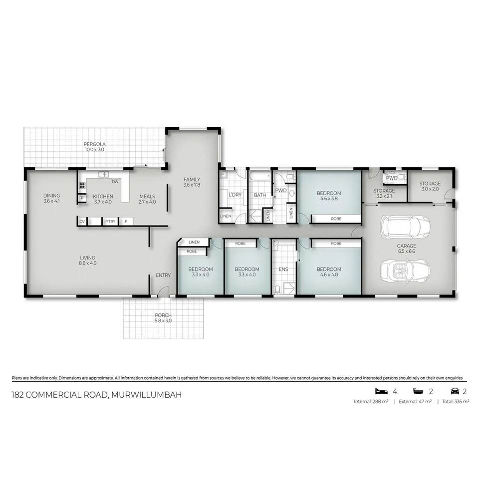 Consisting of 4 family sized bedrooms, main with large ensuite, all with built-in robes, 3 way bathroom & separate laundry.